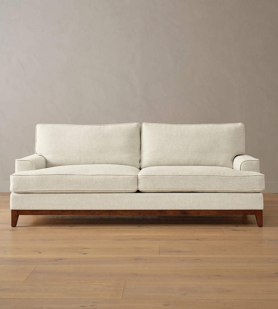 Impactful and clean-lined, this stylish loose backed sofa sits on a signature wooden underframe.
